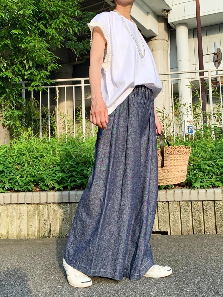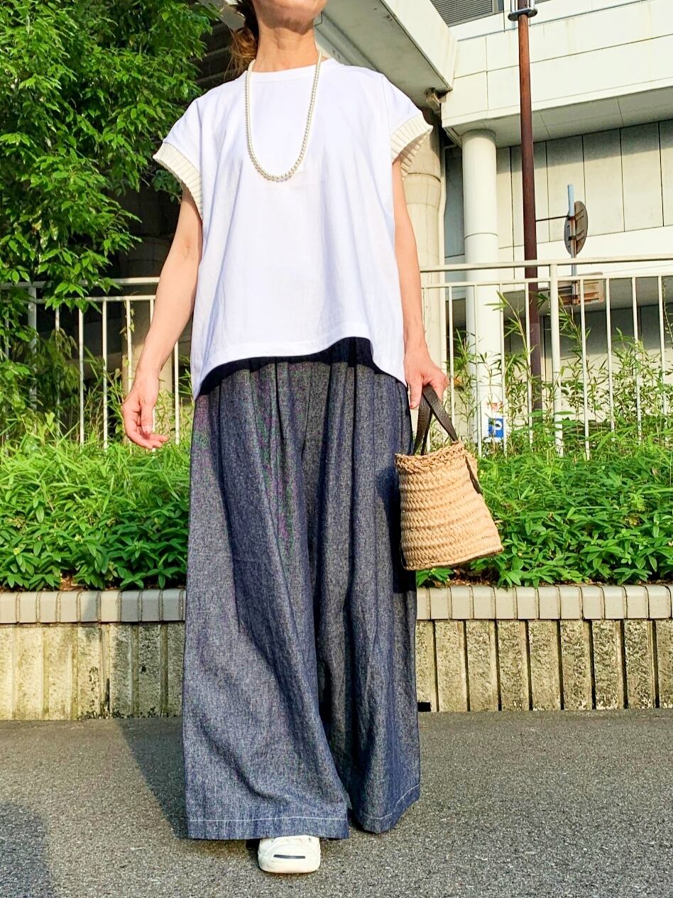 スカートにもパンツにも合わせやすく、子供っぽくなりがちなビックTも袖口のニットリブが付くことで大人カジュアルに着て頂けます