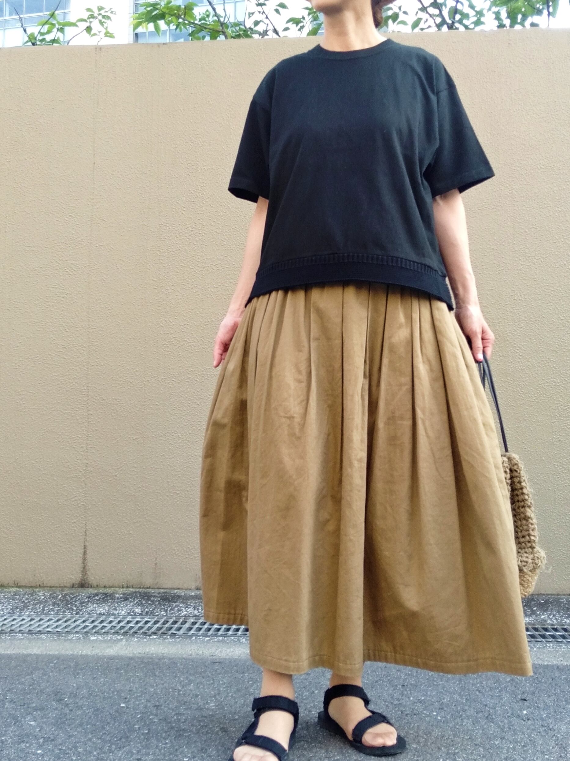 メンズライクなTシャツの裾にニットの柄が可愛いオーバーサイズTシャツです。