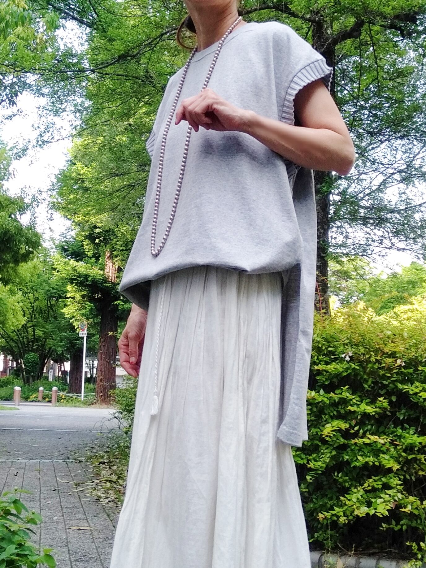 大きく空いた袖口にはニットリブが付いていて、二の腕をスッキリ見せてくれる優れものです。